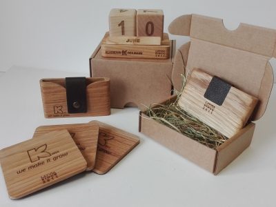 Izstrādājam un izgatavojam dažādas biznesa dāvanas no Latvijā augušiem kokiem. Jebkuru no izstrādajumiem iespējams personalizēt ar lāzergravējumu vai apdrukājot, kā arī veidot vienotu komplektu personalizējot iepakojumu.