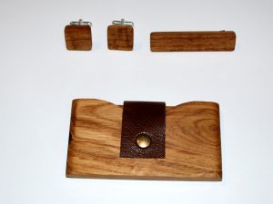 Plāna un eleganta Latvijas ozolkoka vizītkaršu un plastikāta karšu etvija. Etvijā var ievietot 20 gb. standarta izmēra vizītkartes vai līdz 10 plastikāta kartēm. Etvijai ir mežacūkas ādas aizdare ar kniedi un neodīma nagnēts.  Etvija pārklāta ar lineļlas/bišu vasku, kas veido noturīgu, ūdens izturīgu kārtiņu. Uz etvijas ir iegravēts Austras koka zīmējums. Austras koks – tas ir dzīvības, kustības simbols. Tas simbolizē saules ceļu un pasaules kārtību. Veicina enerģijas uzkrāšanu, spēj dot garīgu pasaules izpratni un informāciju. Sargā dzimtu, ģimeni. Lietotāju savieno ar dievu, dod spēku un padomu.